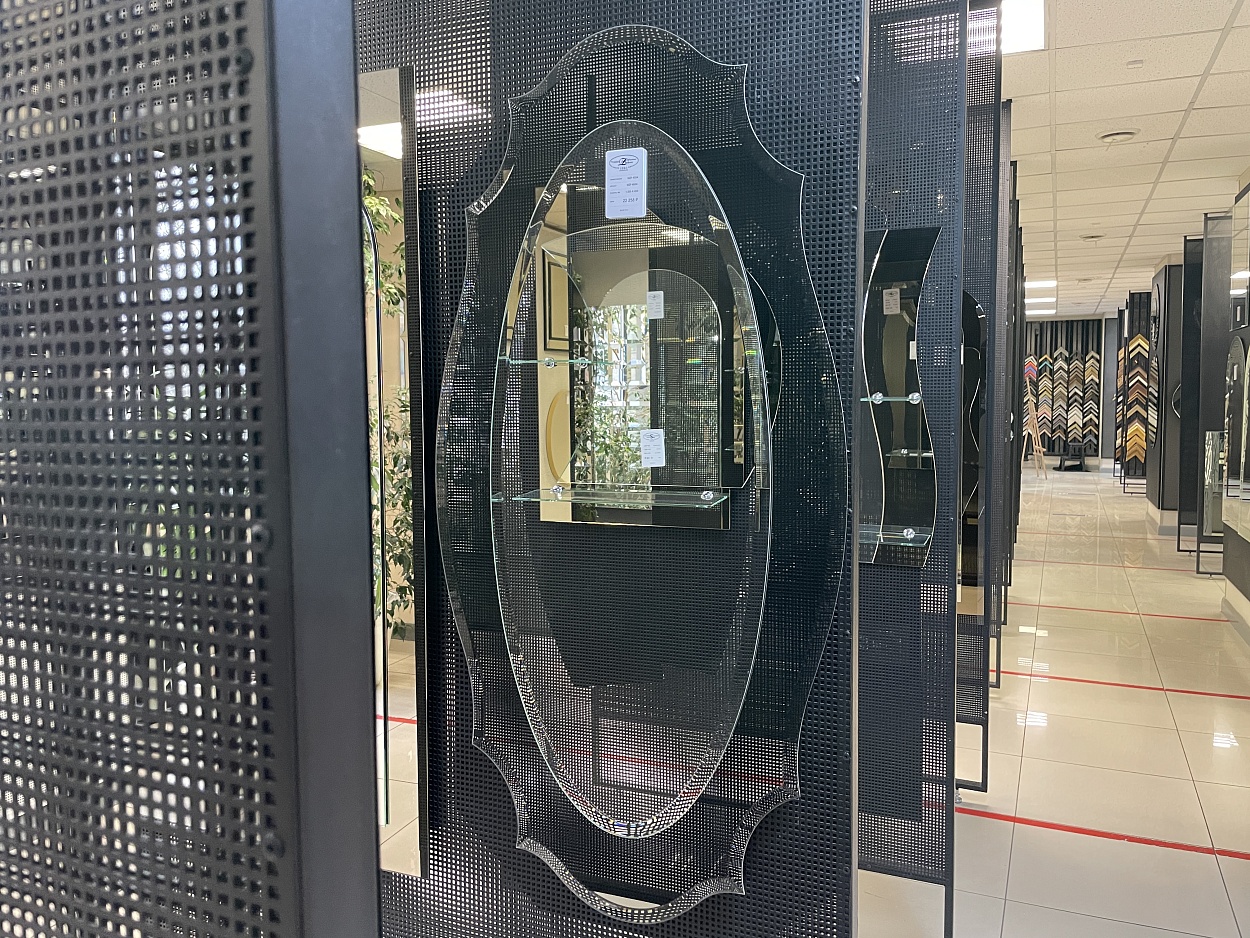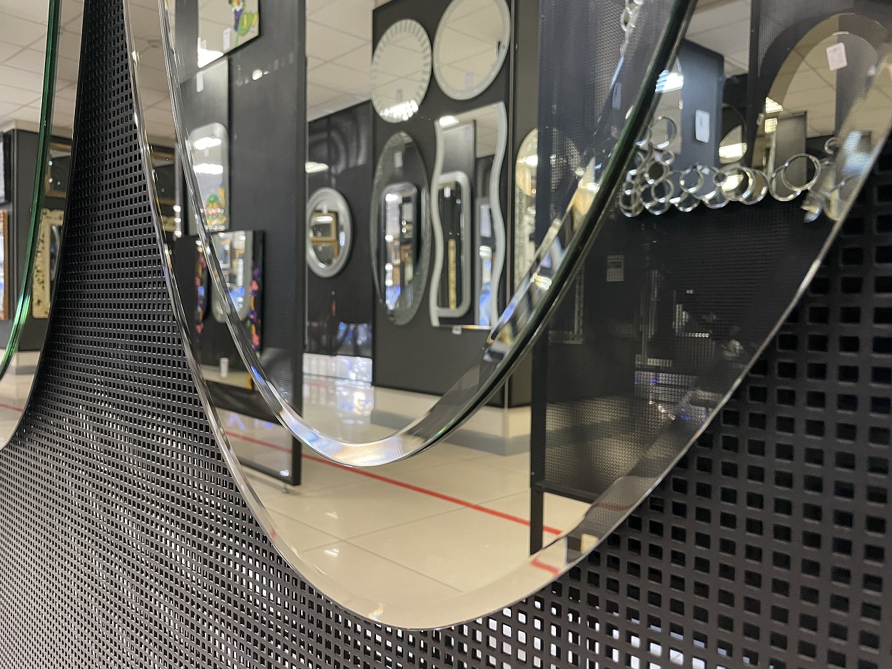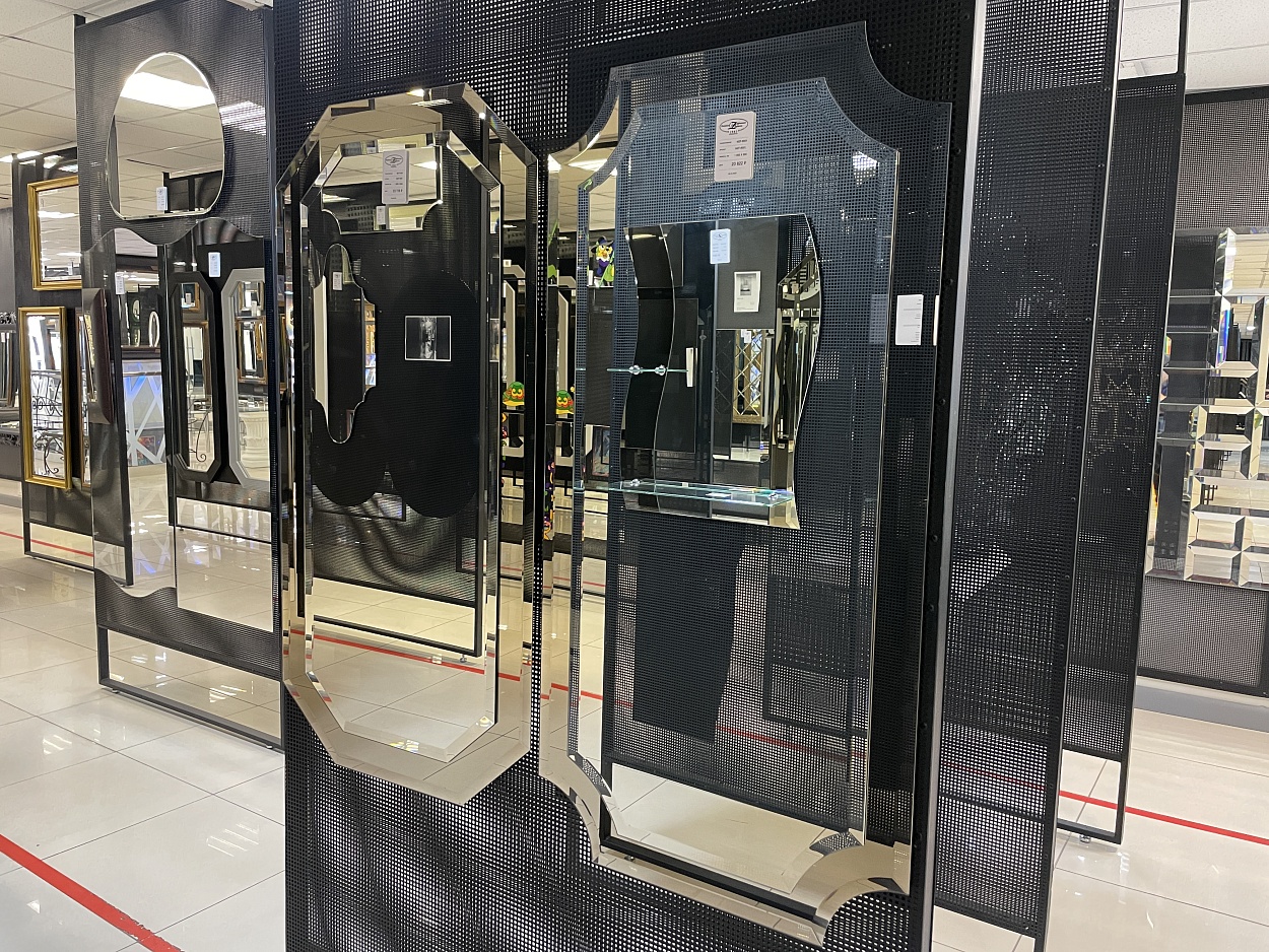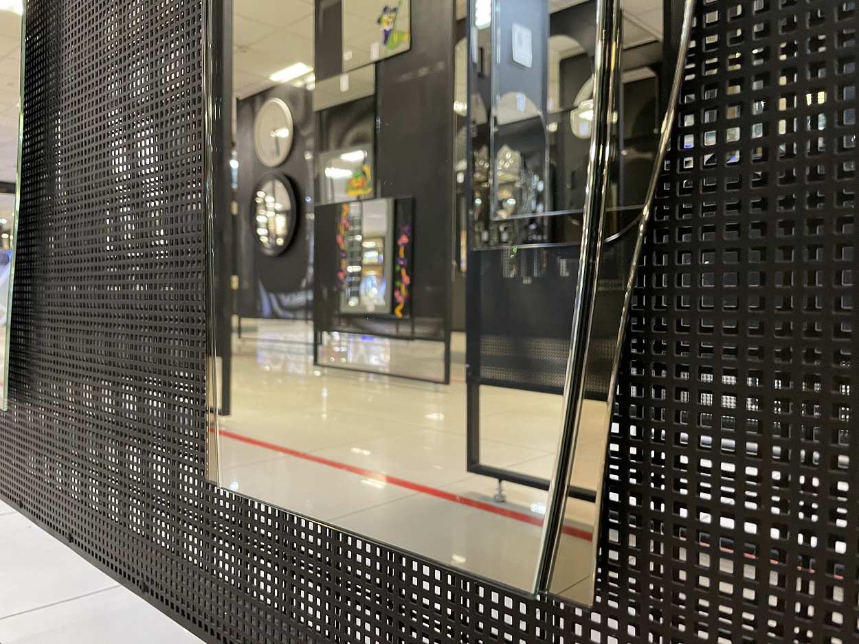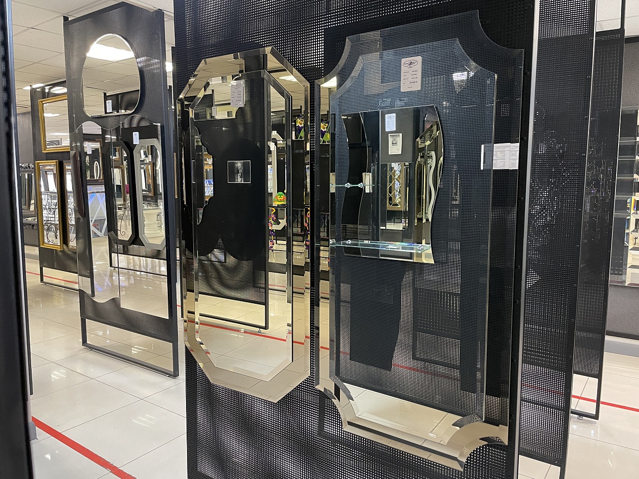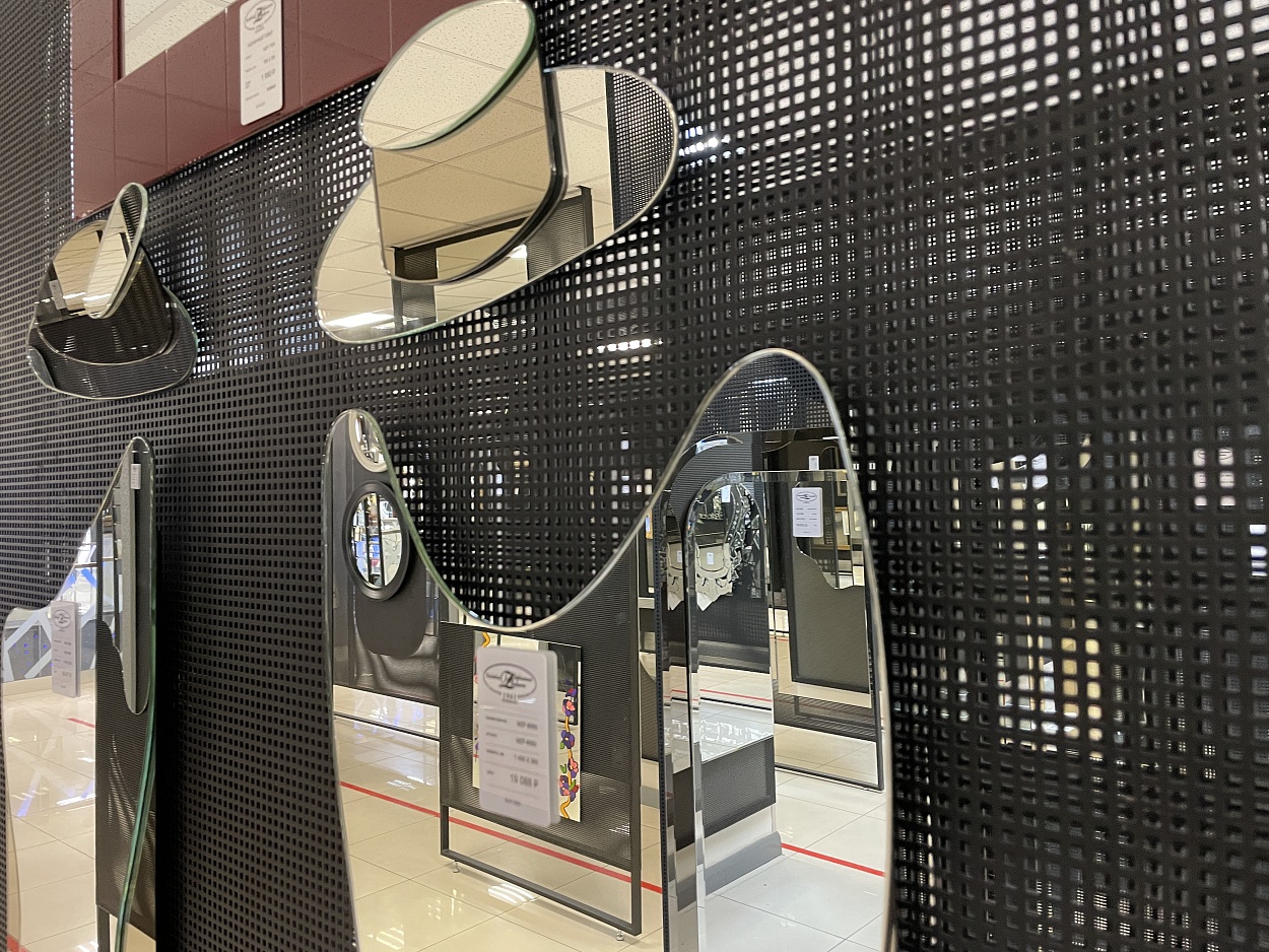 В выставочном зале на Нагорной 17 представлены готовые решения зеркал в разных дизайнах.