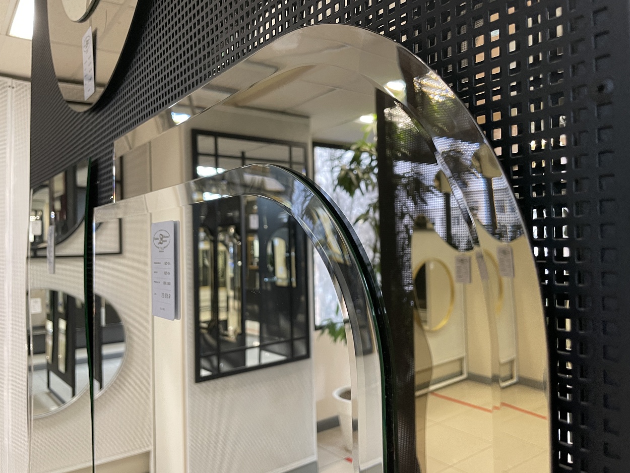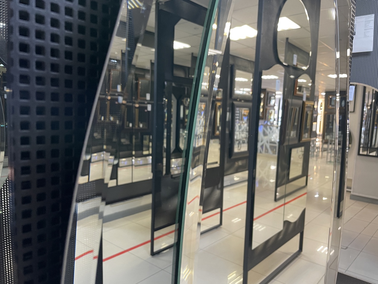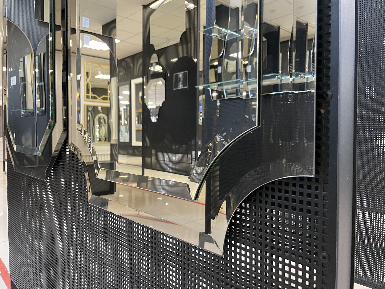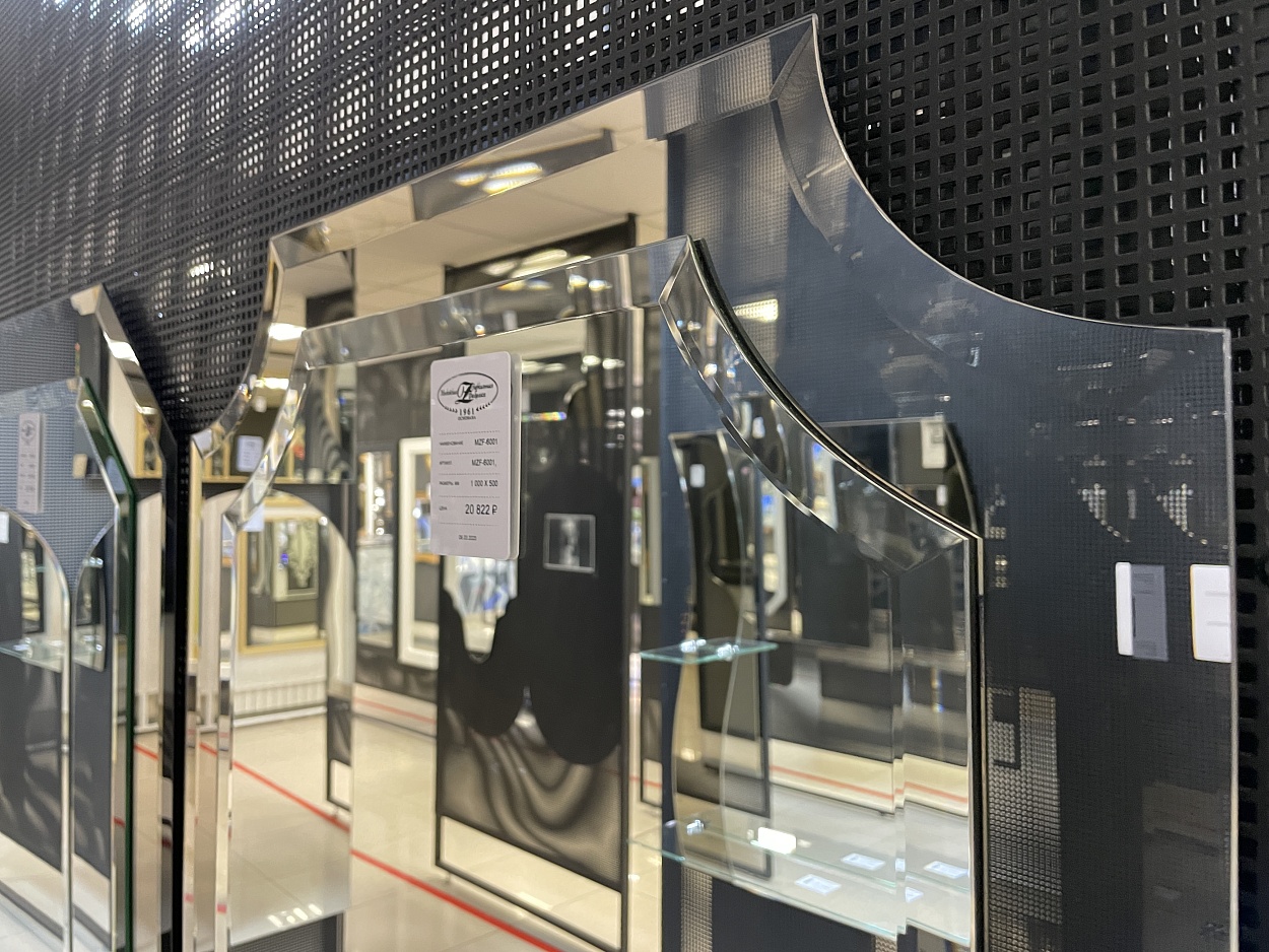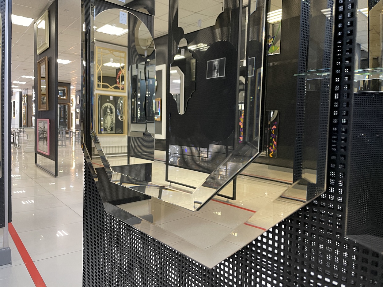 В выставочном зале на Нагорной 17 представлены готовые решения зеркал в разных дизайнах.