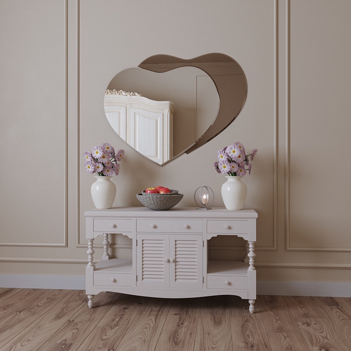 Комбинированное зеркало идеально подойдет для ванной комнаты, прихожей, спальни. Не бойтесь фантазировать, и выбирайте комбинированное зеркало необычных форм и дизайна, а также зеркало с полкой.