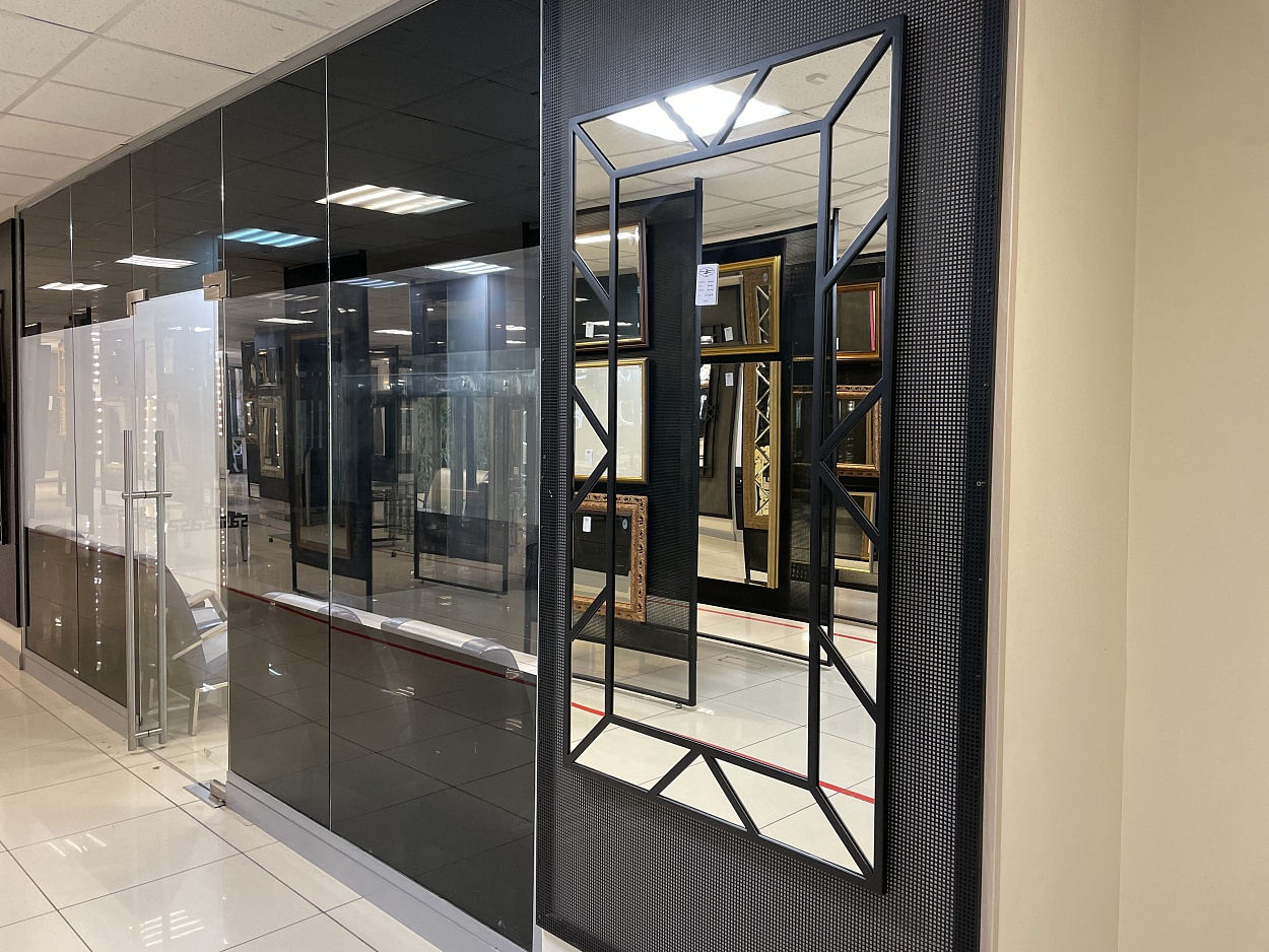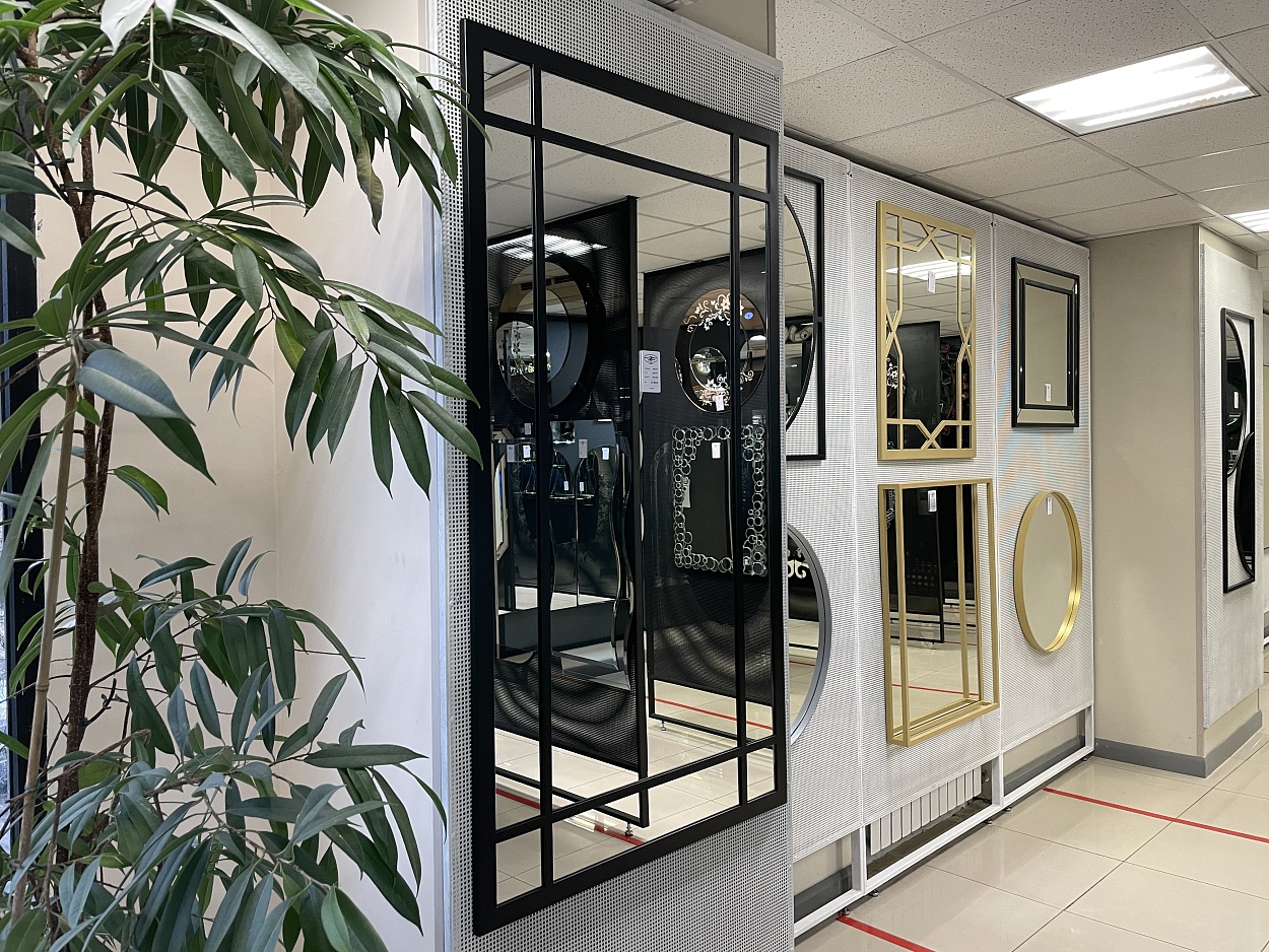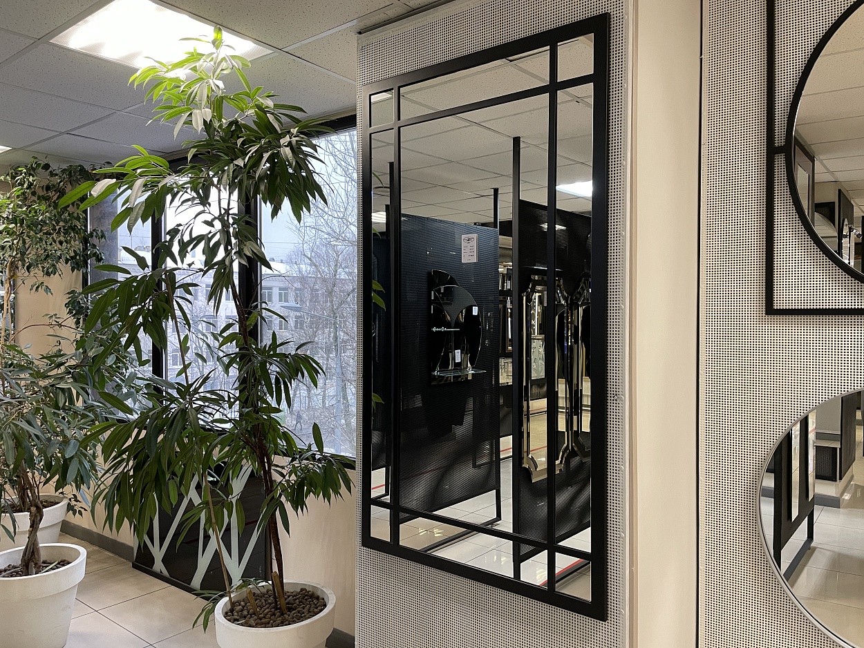 В выставочном зале на Нагорной 17 представлены готовые решения зеркал в разных дизайнах.