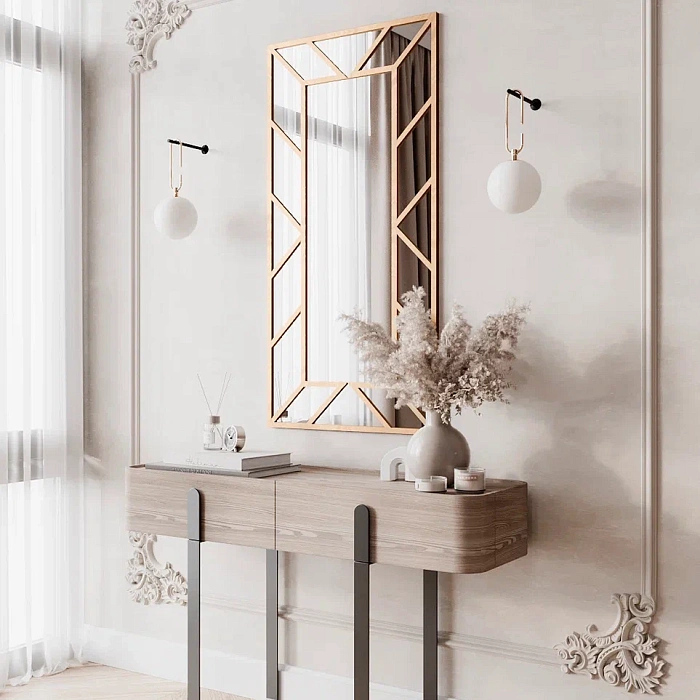 Есть возможность выбрать уже готовое зеркало или изготовить полностью уникальное по Вашим размерам.