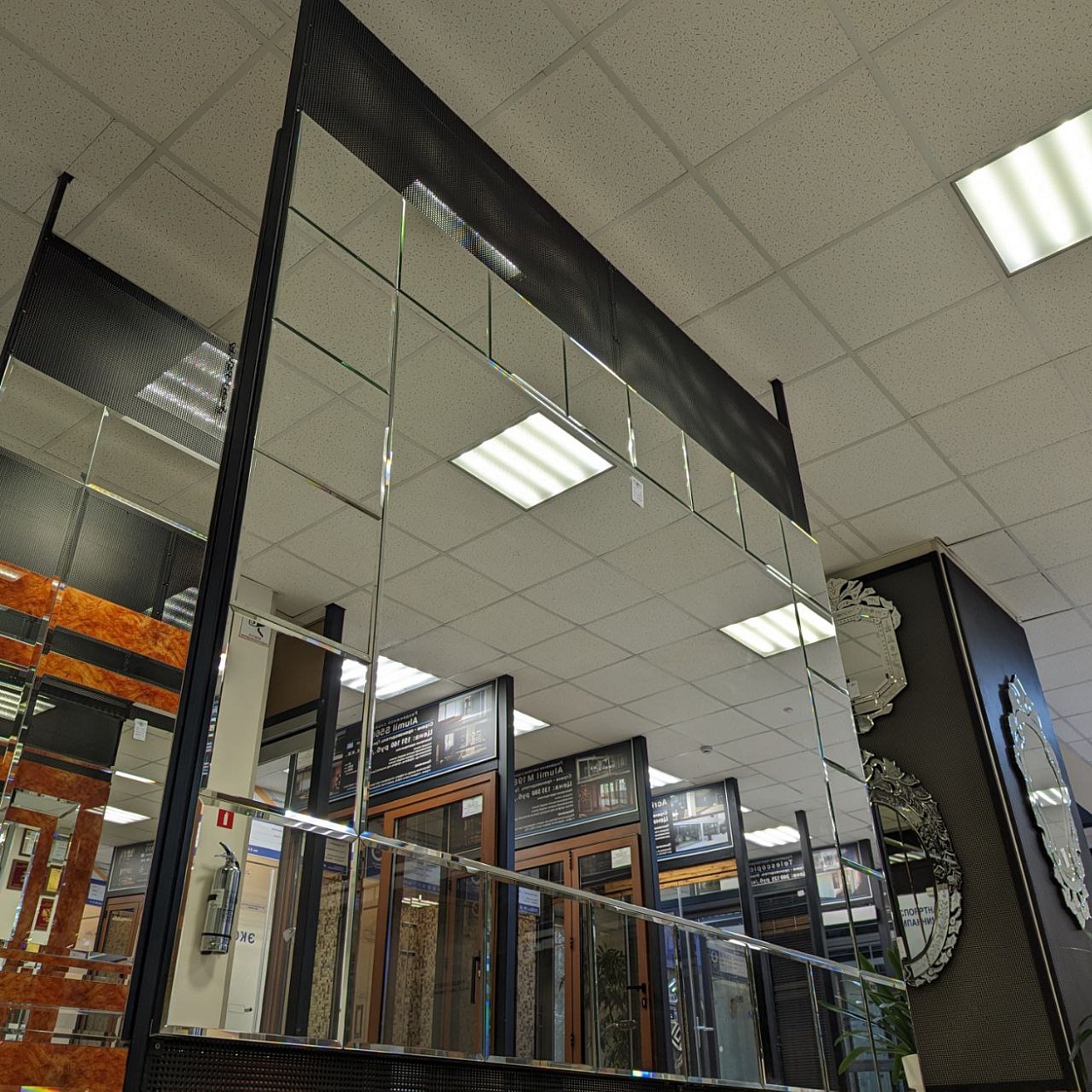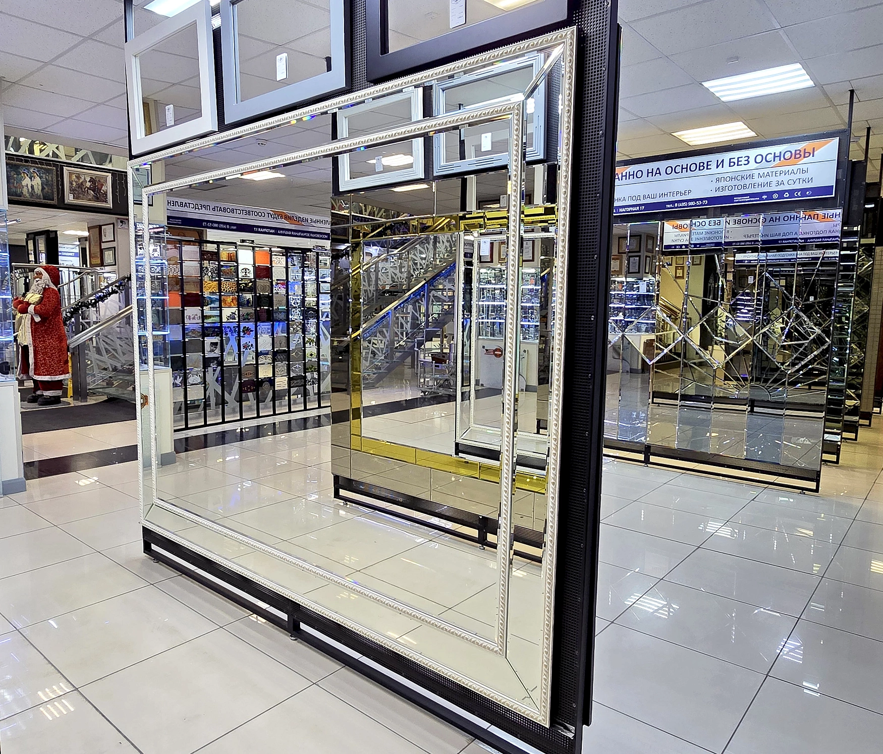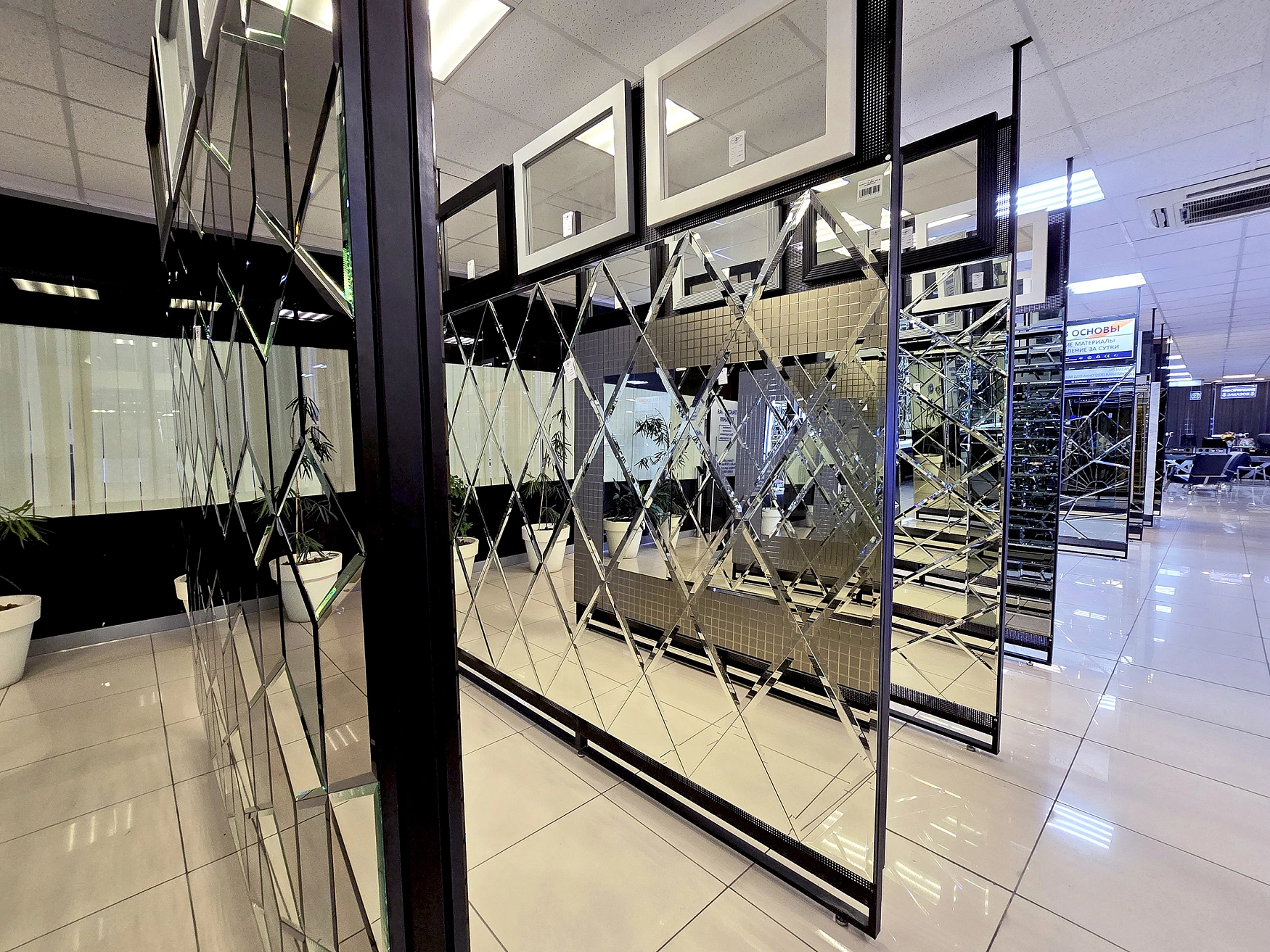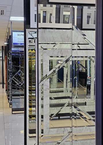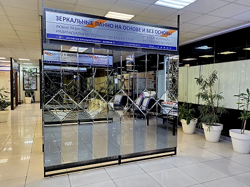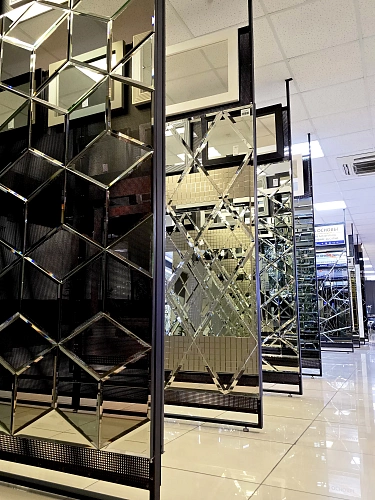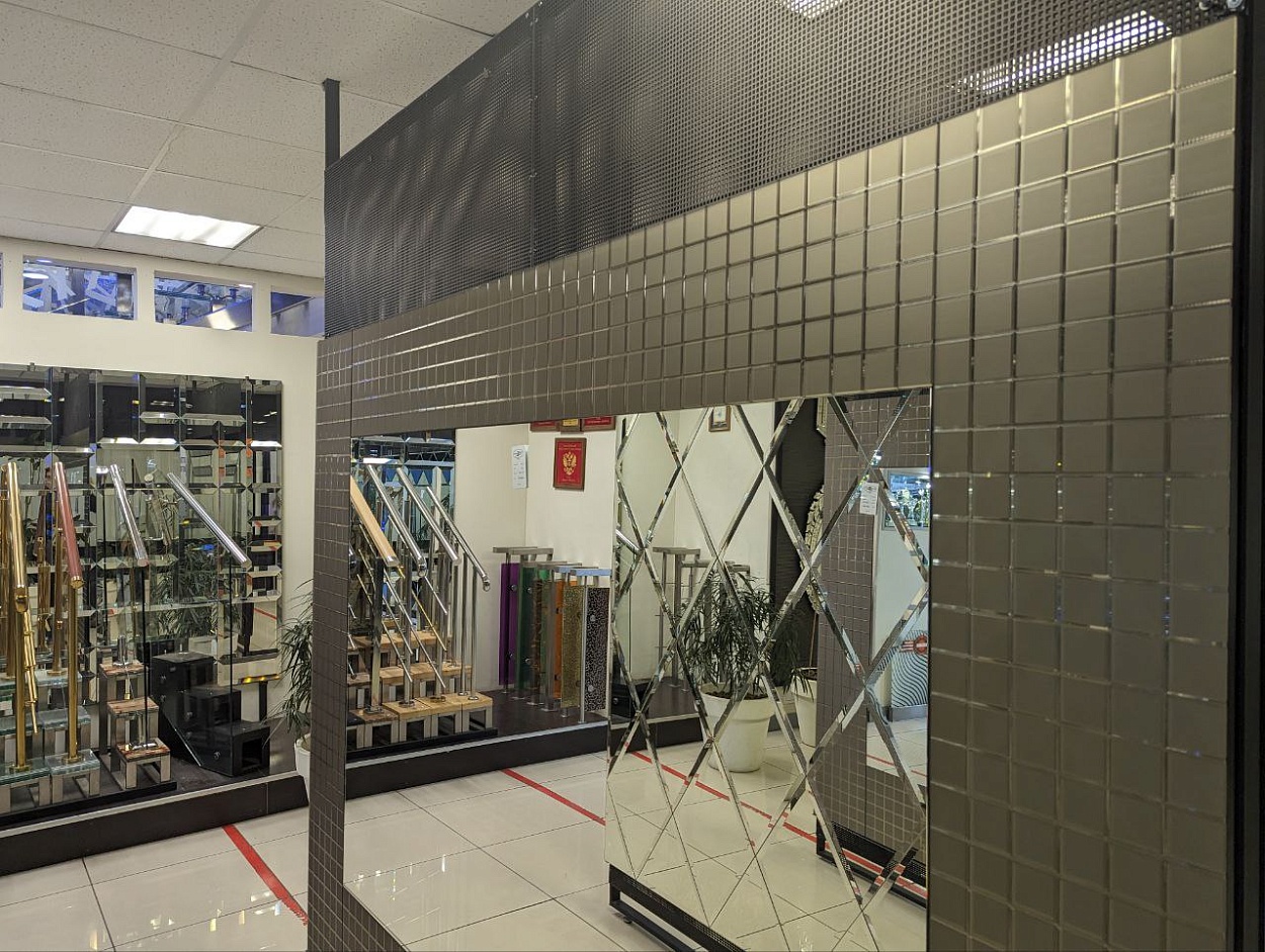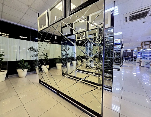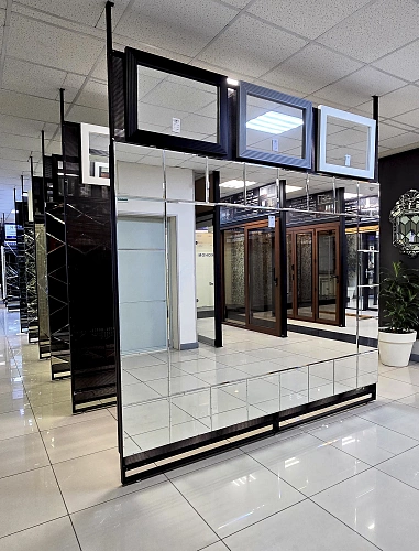 В выставочном зале на Нагорной 17 представлены готовые решения зеркал в разных дизайнах.