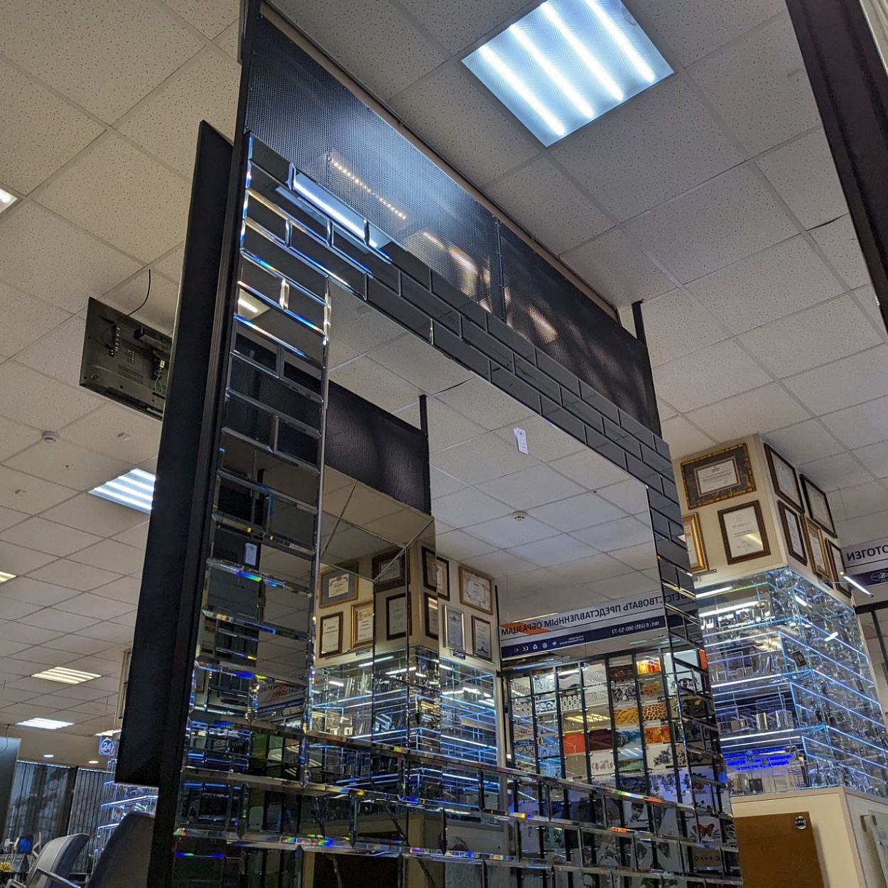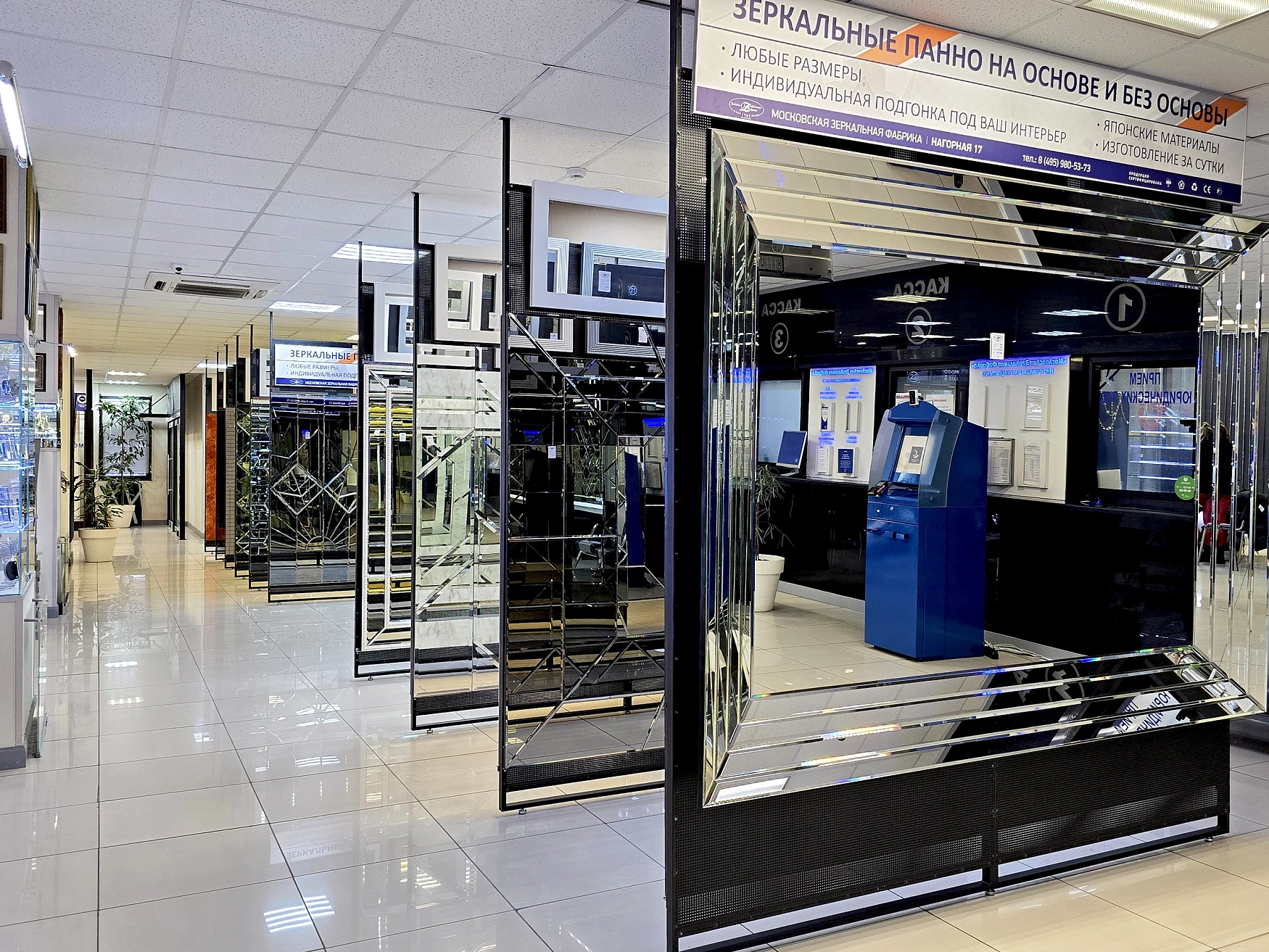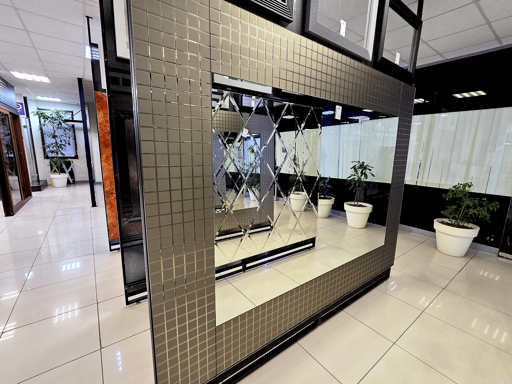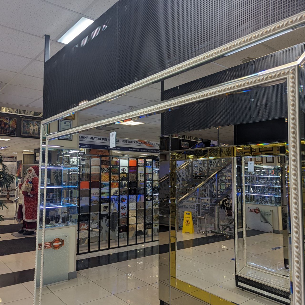 В выставочном зале на Нагорной 17 представлены готовые решения зеркал в разных дизайнах.