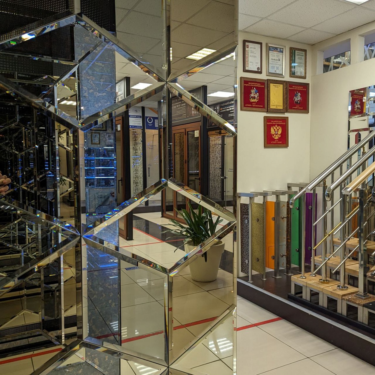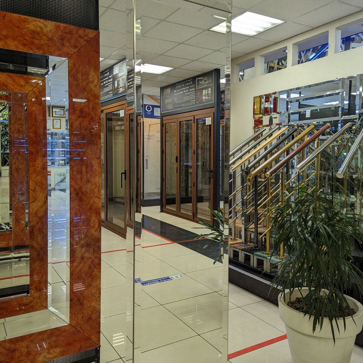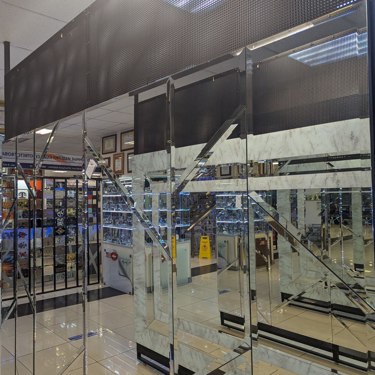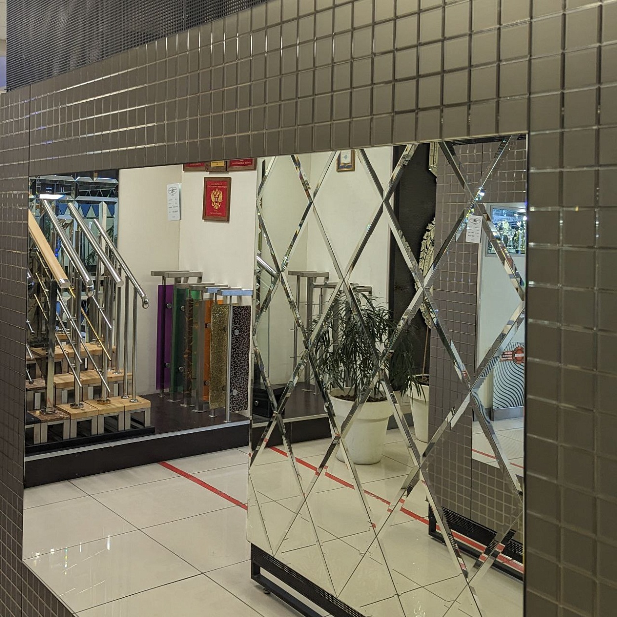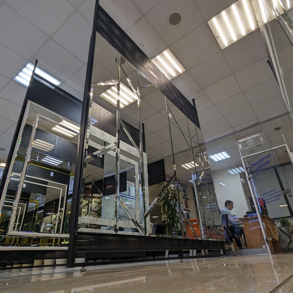 В выставочном зале на Нагорной 17 представлены готовые решения зеркал в разных дизайнах.