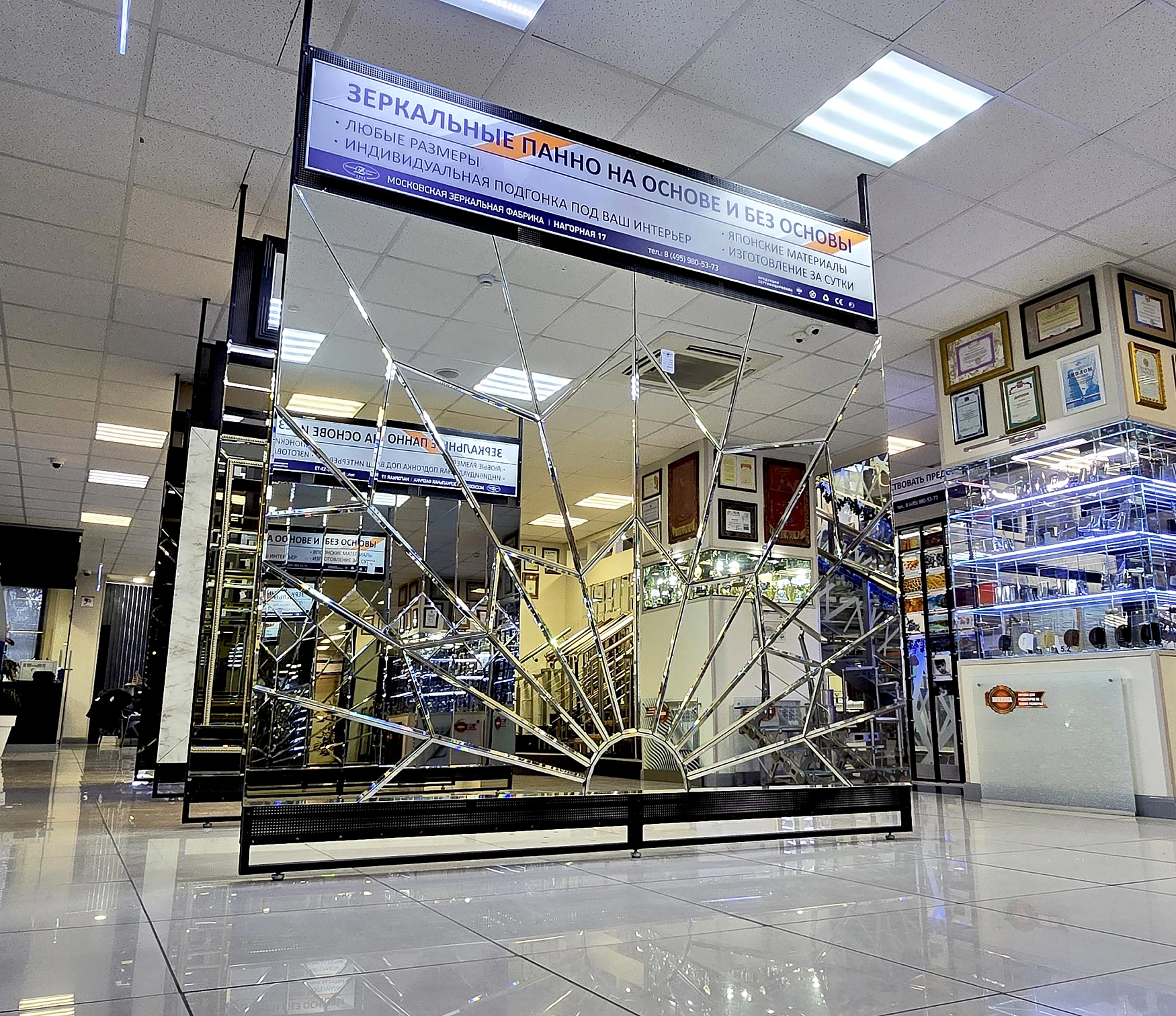 Зеркальное панно станет отличным дополнением интерьера как в квартире, так и в частном доме, ресторане или салоне красоты.