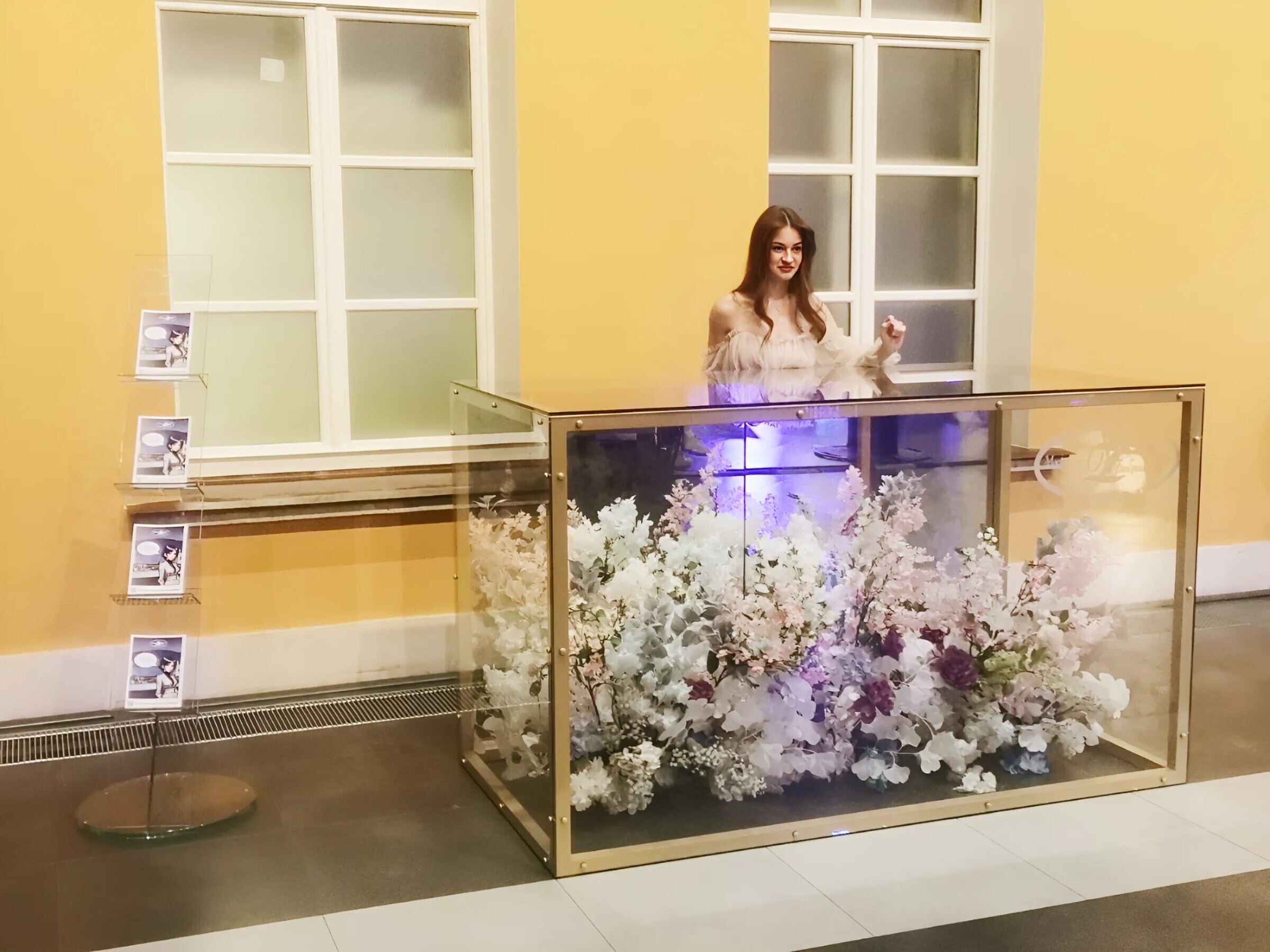 Московская Зеркальная Фабрика выступила партнером этого светского мероприятия и изготовила настоящий шедевр: уникальную стеклянную витрину по индивидуальному чертежу.