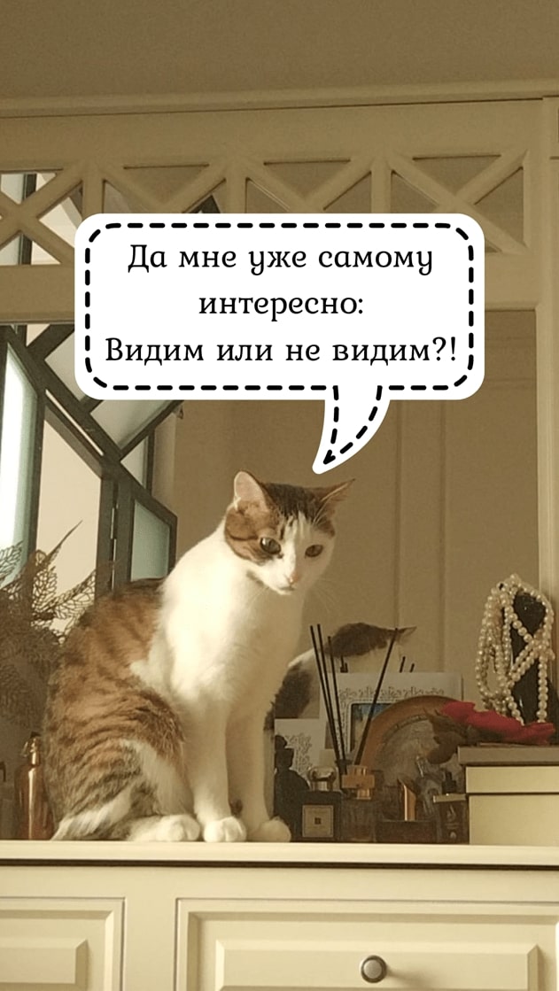 И напоследок, расскажем про кошку Милку. Нам не удалось узнать, видит ли себя Милка в зеркале. На любую попытку принести Милку к зеркалу и посмотреть, что будет, Милка закатывала глаза, шипела и выпускала когти. Нам кажется, что отстаивать свои личные границы и право отдыхать на подоконнике Мила научилась в совершенстве.