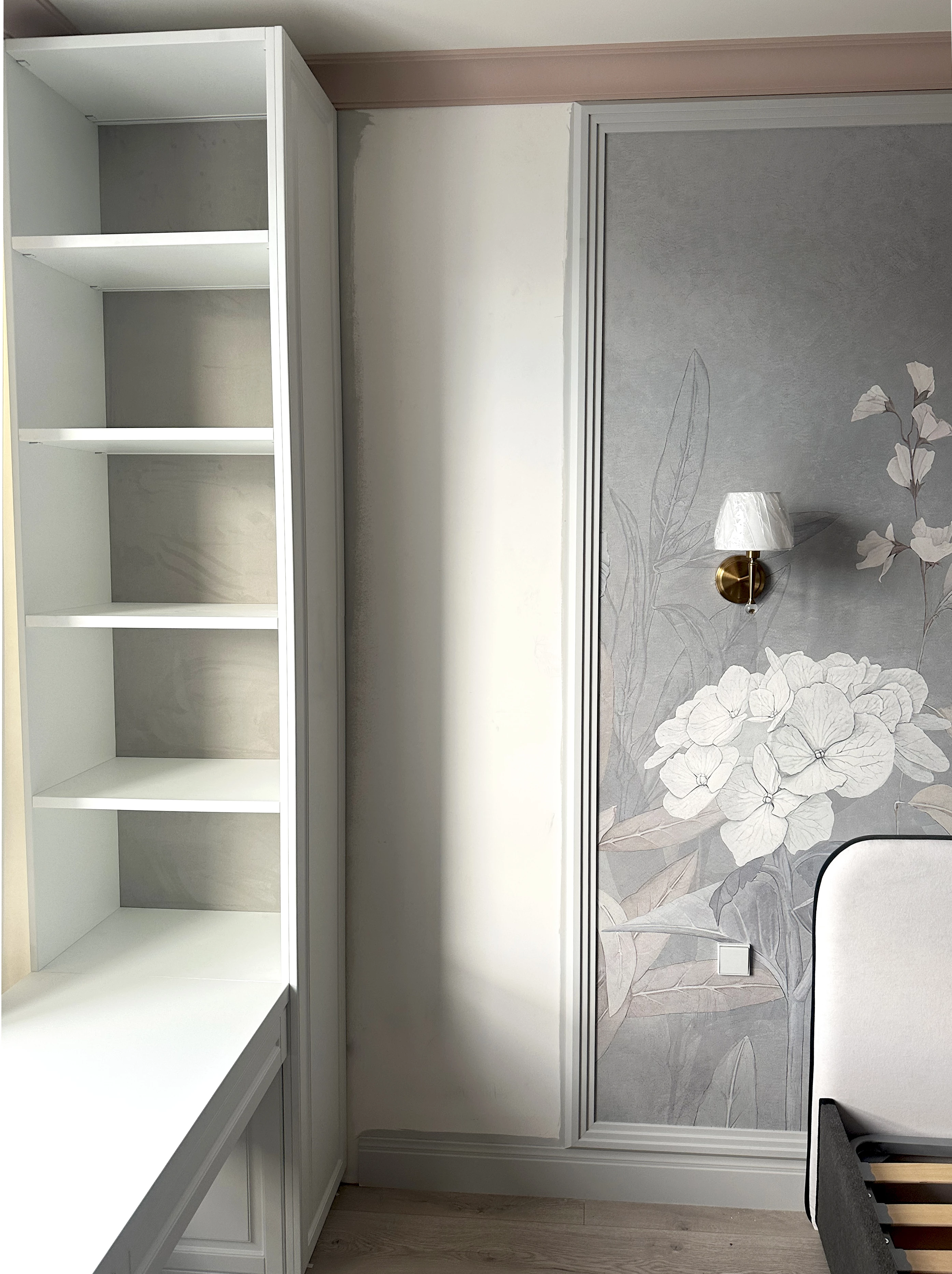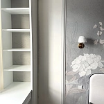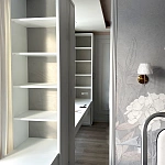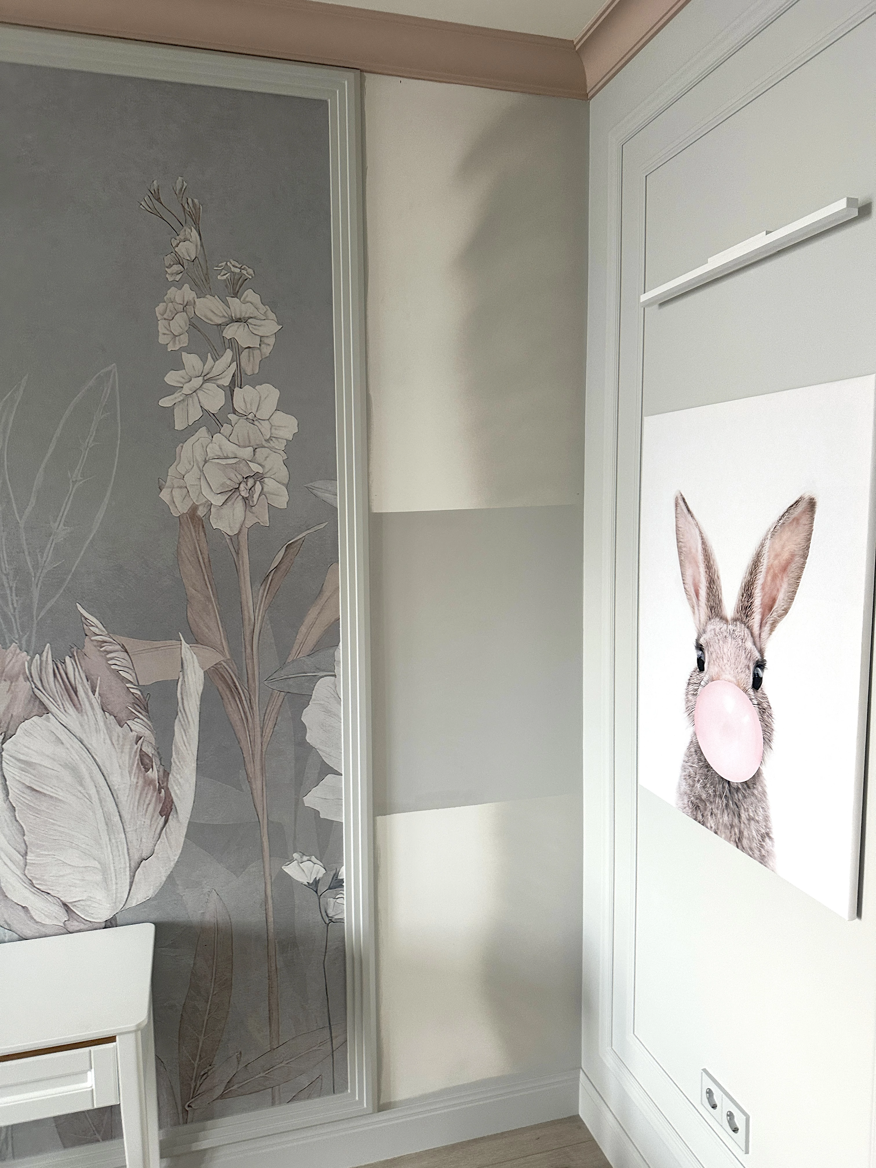 Стоит отметить удачное расположение зеркал, они не только визуально увеличили пространство  детской, но и стали одним из центральных украшений, добавив дополнительные источники света. Стильно, красиво и уютно.