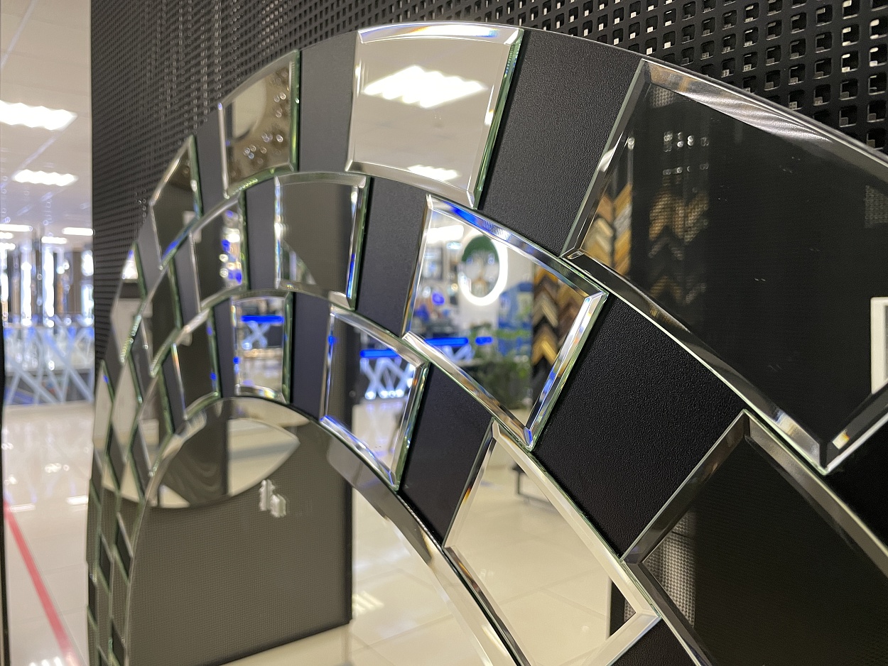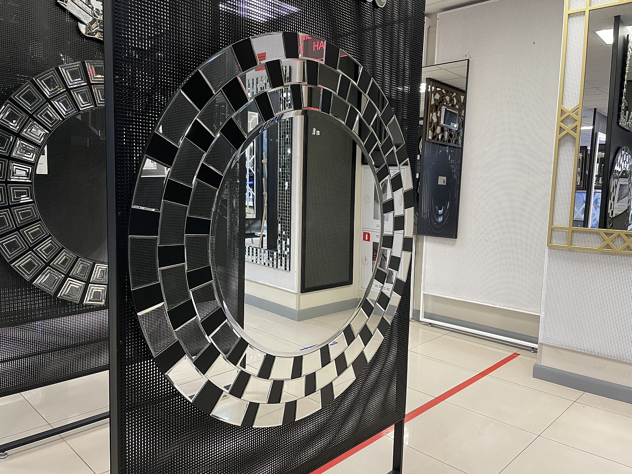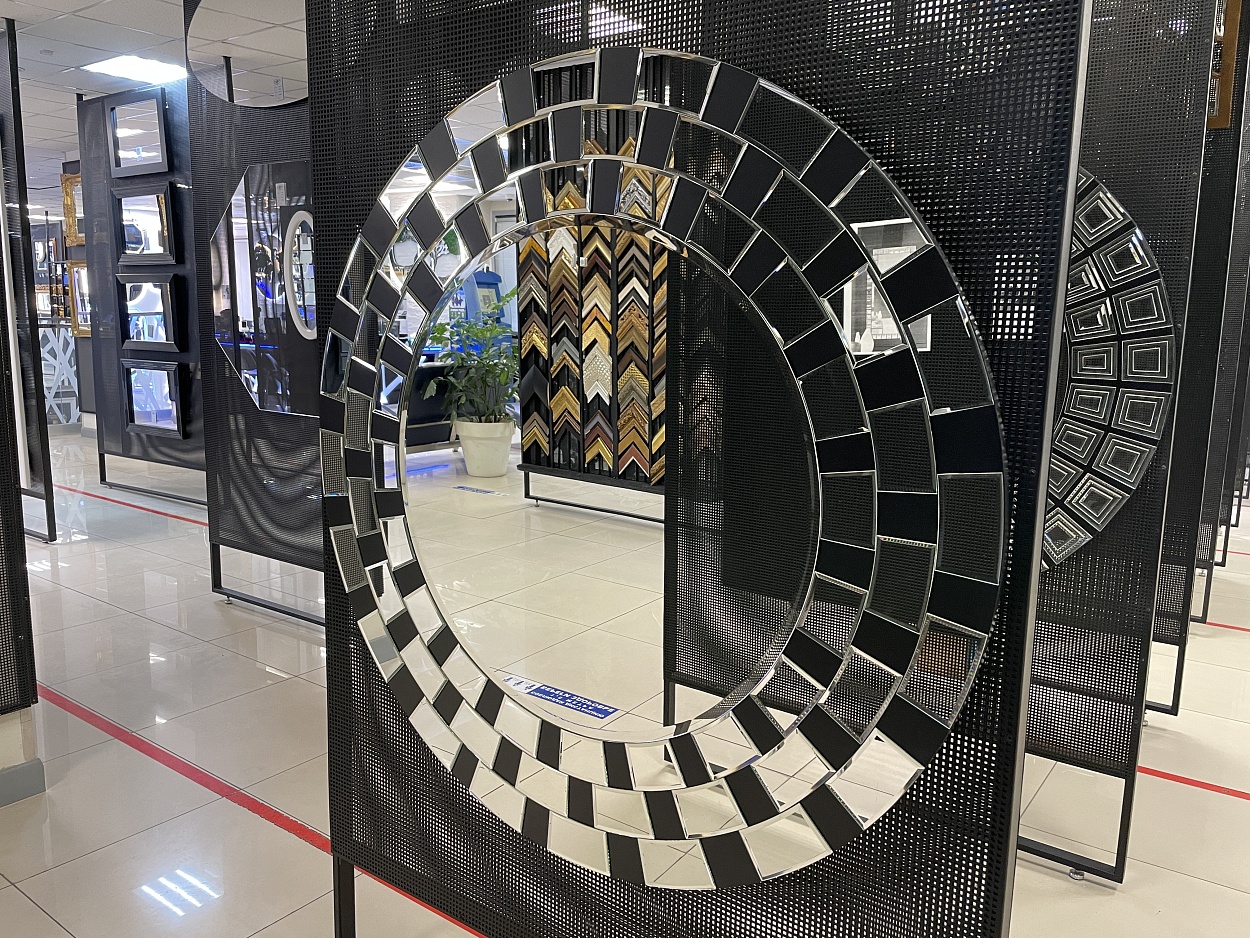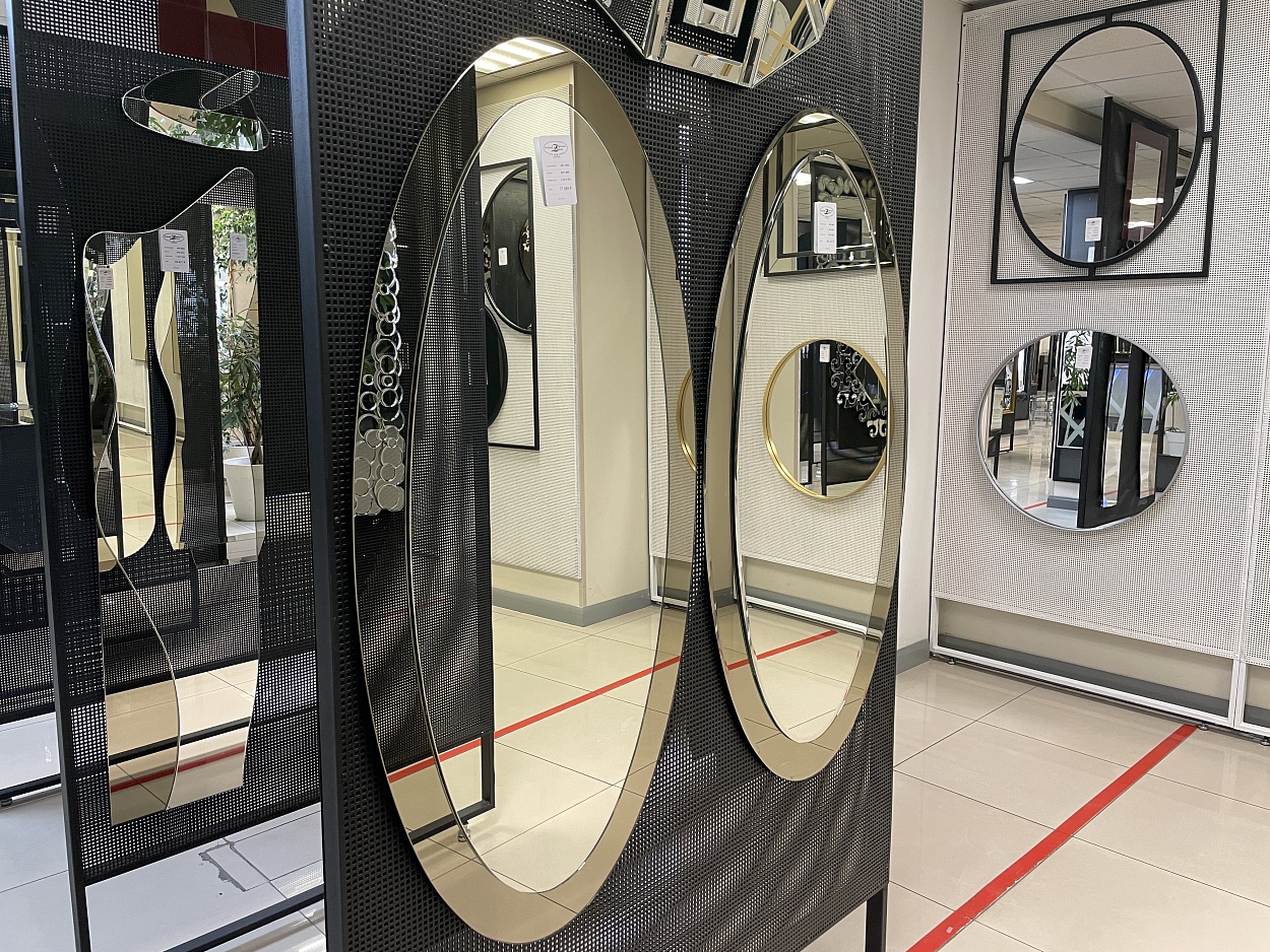 В выставочном зале на Нагорной 17 представлены готовые решения зеркал в разных дизайнах.