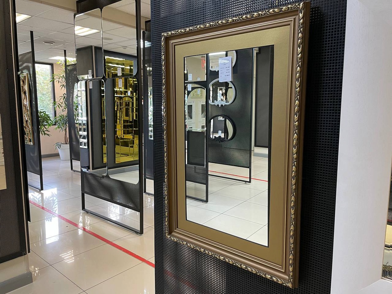 В выставочном зале на Нагорной 17 представлены готовые решения зеркал в разных дизайнах.