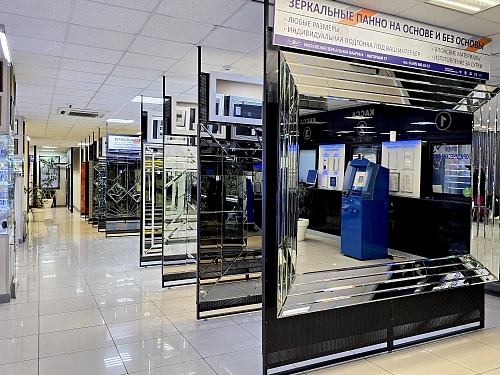 В выставочном зале на Нагорной 17 представлены готовые решения зеркал в разных дизайнах.